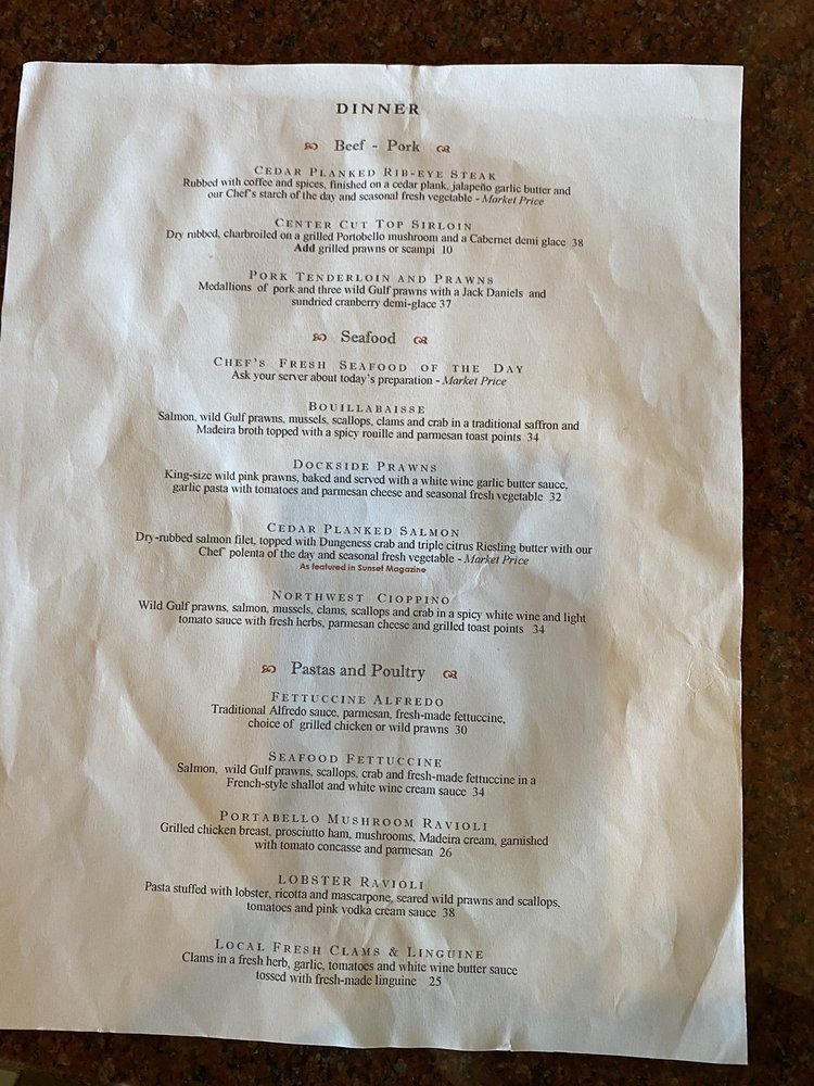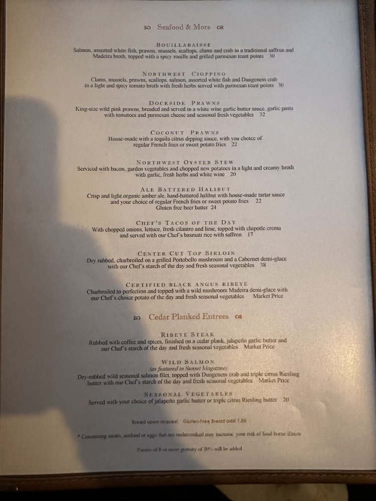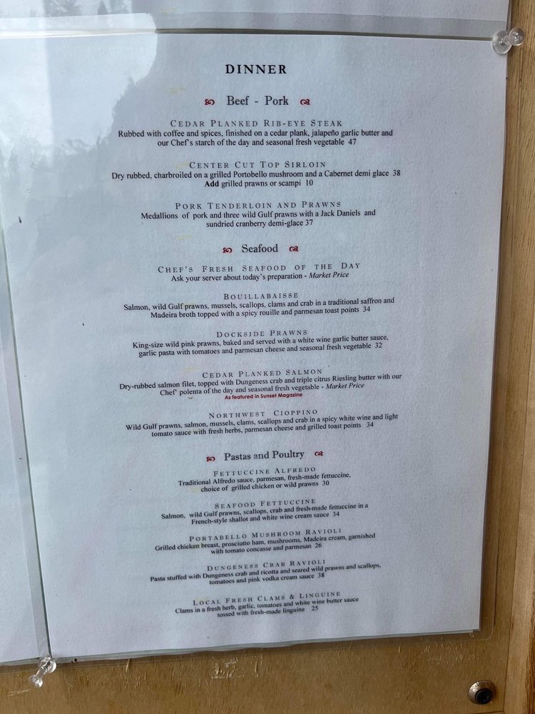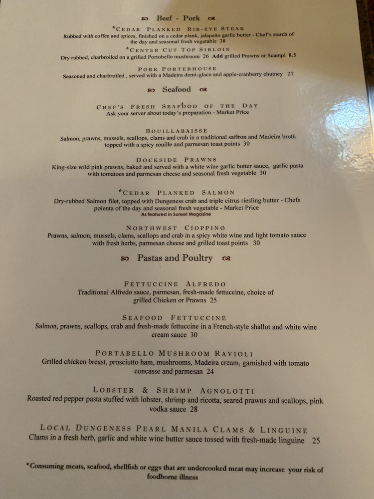 Introducing Dockside Grill, a French, steakhouse, and seafood restaurant located in Sequim, WA. Known for its delicious oyster stew, seafood bouillabaisse, and seafood linguine, as well as customizable pasta dishes. The menu also includes oysters Rockefeller and a mouth-watering mud pie brownie. Customers rave about the great service, with friendly and attentive staff who go above and beyond. The restaurant offers a warm ambiance and breathtaking views, making it a perfect dining spot. With options for vegans and limited vegetarian choices, Dockside Grill caters to a variety of dietary preferences. Whether you're looking for a romantic dinner or a place to gather with friends and family, Dockside Grill is a top choice. Make sure to secure a reservation to experience the fantastic food, great service, and beautiful waterfront views.
